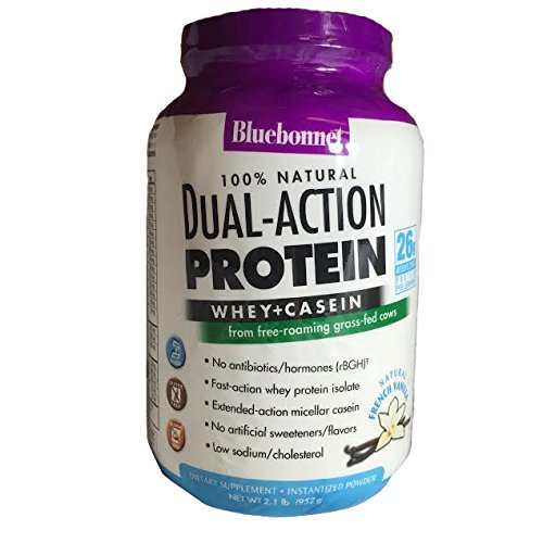 Bluebonnet Nutrition 100% Natural Dual Action Protein Powder Natural French Vanilla Flavor- 2.1 lbs - Powder