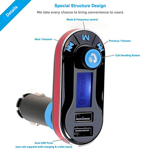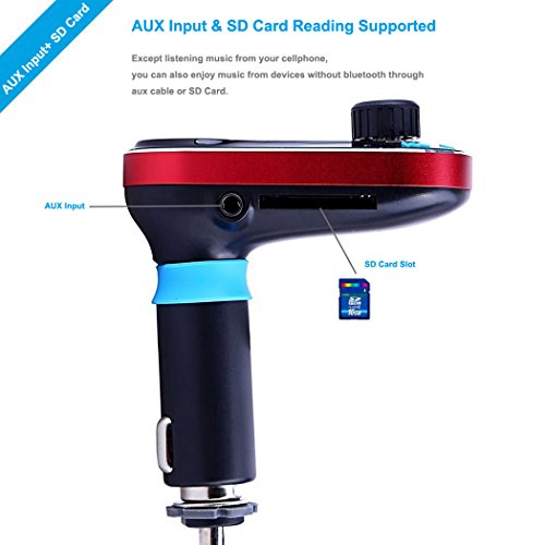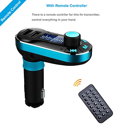 -. Feature : Handsfree calling is available when your cell phones being connected with this bluetooth car kit.You can playing music by car audio system through this fm transmitter. / This bluetooth fm transmitter has two usb port,two cell phones mp3 ipod or other devices can be charged at the same time. / SD card music playing is supported by this car fm transmitter,also this stuff can play music in U-disk,you can enjoy music conveniently. / 3.5mm Aux input is available for this wireless fm transmitter,which can supply stable transmission. / This bluetooth fm transmitter support remote control, it can be controlled by a 21key remote controller easily, which is more convenient than the stuff without controller.