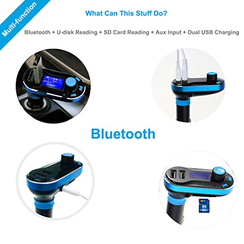 -. Title : Bluetooth MP3 Player FM Transmitter Handsfree Car Kit with Dual USB SD Card U-disk Music Playing 3.5mm Aux Input s for iPod iPhone iPod Samsung Galaxy HTC Sony Xperia Motorola BSR International Blue