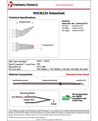 Thermaltronics M6CB225 Chisel Bent 30deg 1.78mm (0.07") interchangeable for Metcal STTC-098