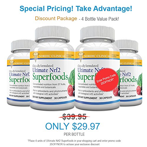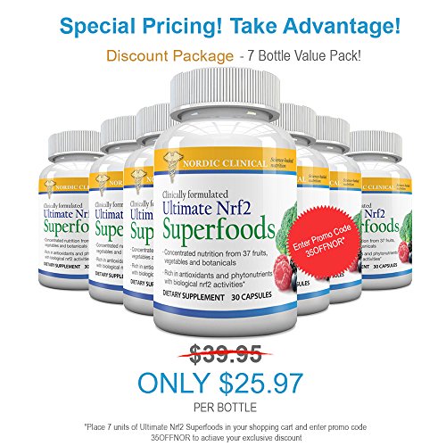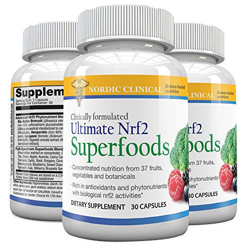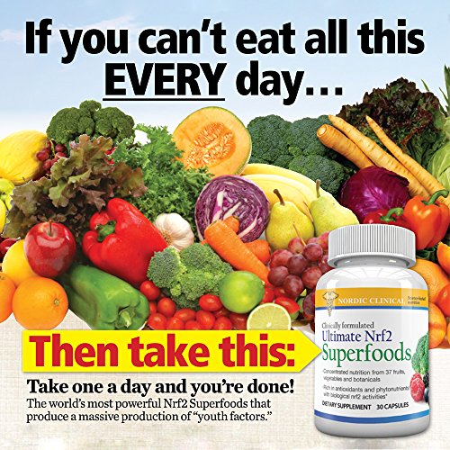 For the most reliable nutritious fruits and vegetables, supplement with Ultimate Nrf2 Superfoods! A healthy diet full of phytonutrient-rich fruits and vegetables is crucial to maintaining overall health and well-being. That's why we recommend taking a premium fruit and vegetable supplement. Ultimate Nrf2 Superfoods has 37 of nature's most potent superfoods! Together, the specially selected red, yellow/orange, blue, green, purple and white fruits, vegetables and botanicals in Ultimate Nrf2 Superfoods provide nourishment and support for every tissue and organ in the body. PLUS, they cleanse toxins at the cellular level to support graceful aging and increased longevity. What makes Ultimate Nrf2 Superfoods so powerful? The secret is Nrf2 activation By activating a cellular switch called Nrf2, Ultimate Nrf2 Superfoods helps boost production of the body's crucial home-grown antioxidants, such as glutathione, catalase and superoxide dismutase (SOD). Because they are manufactured by our own bodies, and not obtained from food sources, these endogenous antioxidants are far more potent than food-based antioxidants. They initiate cell regeneration from the inside-out (versus from the outside in) to help. Formulated with Bio-Active Broccoli from broccoli seeds Glucoraphanin is the magical compound in broccoli that makes it a known superfood. When Ultimate Nrf2 Superfoods is ingested, the glucoraphanin combines with myrosinase and releases sulforaphane, the most potent Nrf2 activator Revolutionary 3-in-1 formula supplies plant-based Nrf2 activators, key phytonutrients and a full spectrum of antioxidants, all in a single capsule! Ultimate Nrf2 Superfoods is loaded with Nrf2 activators, botanical phytonutrients and full-spectrum antioxidants to provide you with the most powerful cell protection available-at a great value! 0 |