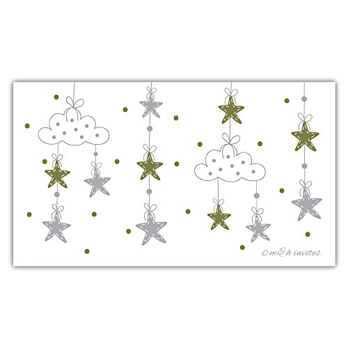 These cards measure 3.5” by 2” and feature an adorable star and clouds design on the front and back of cards!