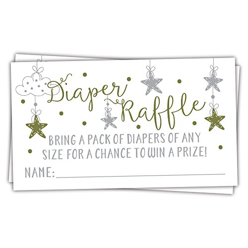 50 Baby Shower Diaper Raffle Tickets - Easy to include in with your invitations and hand out to guests at the shower - every pack of diapers gets guests one entry in the raffle!