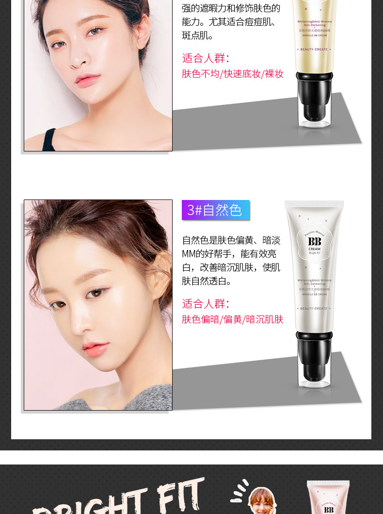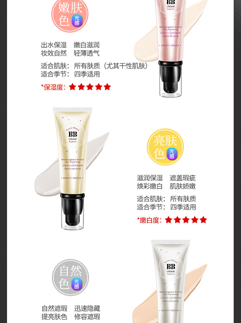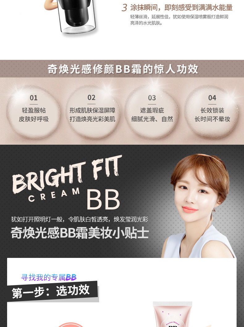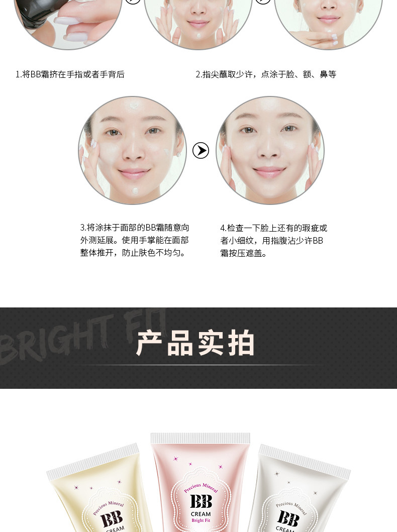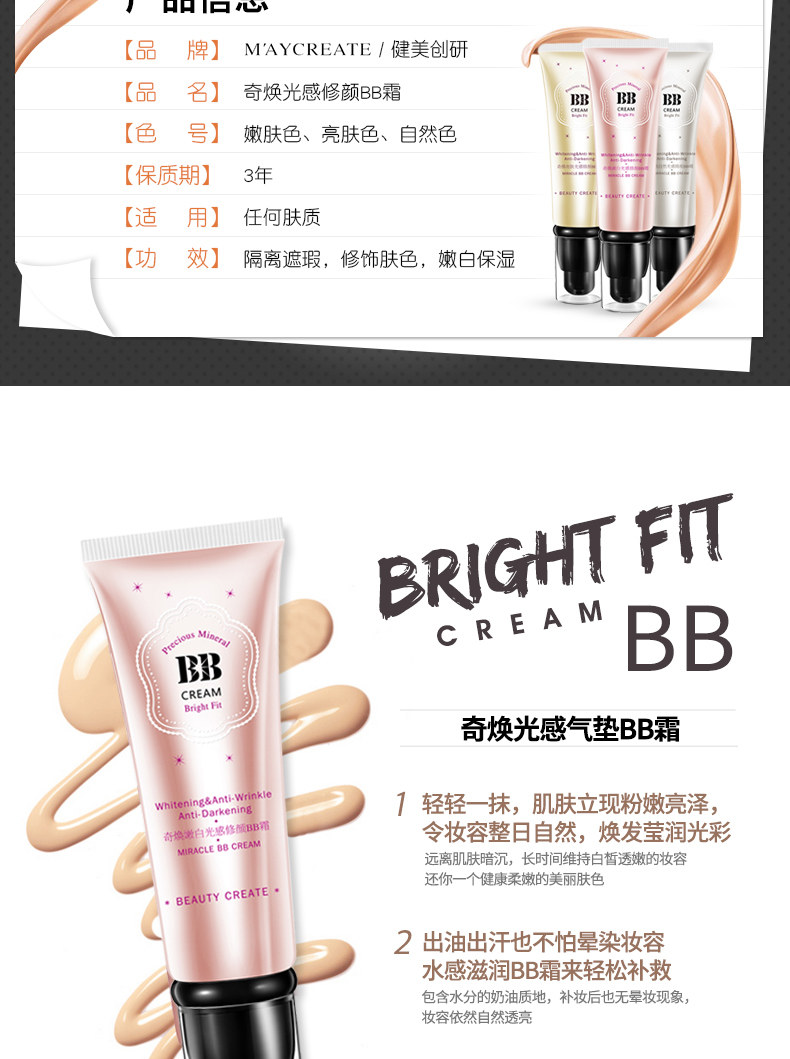 【3支装】专柜正品 BB霜50g裸妆遮瑕强 保湿控油提亮隔离霜粉底液