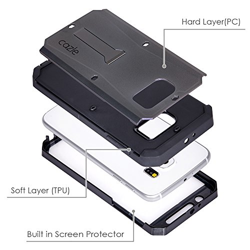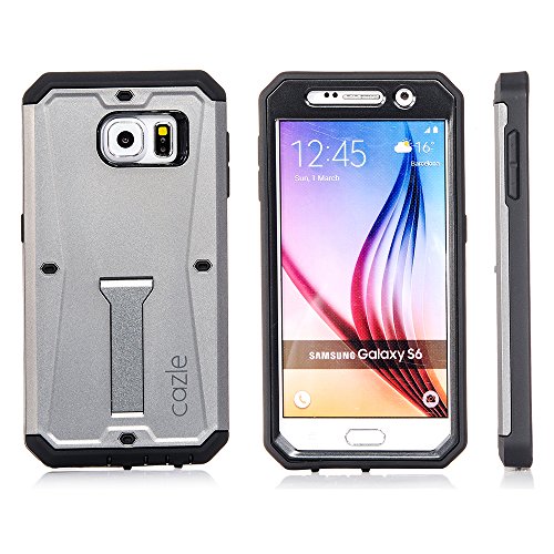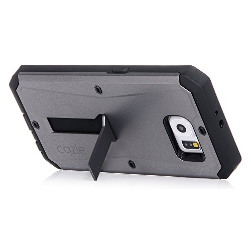 Galaxy S6, Tridefense Three-layer Rugged Protective Cover with Built in Screen Protector and Foldable Kickstand for Samsung Galaxy S6 By Coveric (Gray)