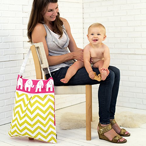 Headed out for the day's adventures? The Daytripper Wet + Dry Tote will keep you tidy and prepared no matter what may come. With two deep pockets - a dry one on the front and wet interior one - even the biggest messes are a breeze. Woven cotton canvas strap with nylon side-release buckle easily snaps onto a stroller or comfortably tosses over your shoulder. Our thoughtfully paired fabrics make this a bag that doesn't need to hide. We've designed the Daytripper Wet + Dry Tote to be as versatile as you are: - Headed to the beach or pool? Pack the Daytripper with swimsuits and towels. - Perfect for toting around a quick wardrobe change during potty training. - Send your little one to daycare with a full day's supply of cloth diapers (8-10). - Keep dirty diapers and clothes contained on a long road trip. Waterproof. Washable. Ecochic.Feature