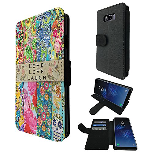 -. Title : 000584 - Shabby Chic Vintage Live Love Laugh Floral Skull Case Design Design Samsung Galaxy S8 Credit Card Flip Case Purse pouch Stand Cover