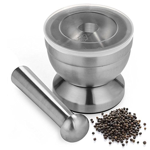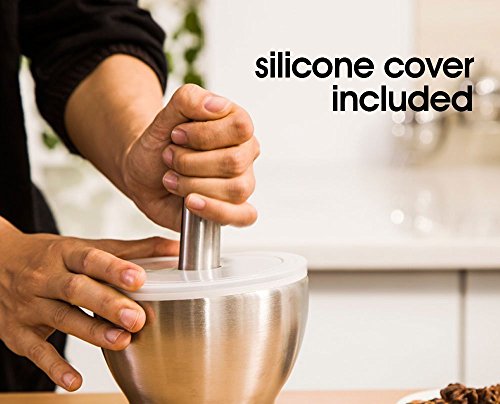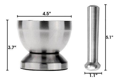 Apothecary’s Grinder | Indestructible Non Toxic 18/8 Stainless Steel Mortar and Pestle for Crushing Grinding Ergonomic Design with Anti Slip Base and Comfy Grip Dishwasher Safe Series Sleek Silver