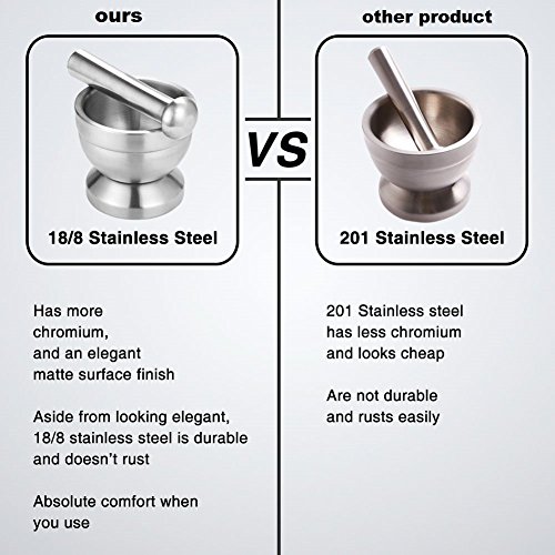 SOLID STAINLESS STEEL THAT LAST A LIFETIME --- Solidly constructed from type 304/18/8 stainless steel, which is really sturdy, durable, non-toxic, anti-rust, and it will last for decades. It is not too heavy nor too light. Weighing 2,6 lbs is quite heavy for the size 4.5 x 3.9 x 3.7 inches.