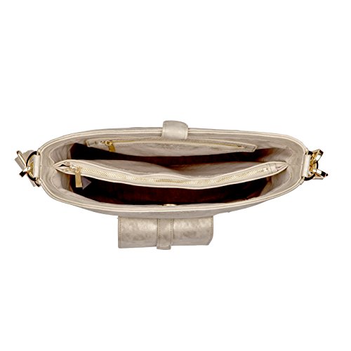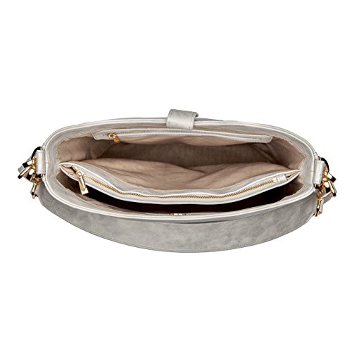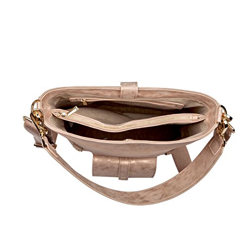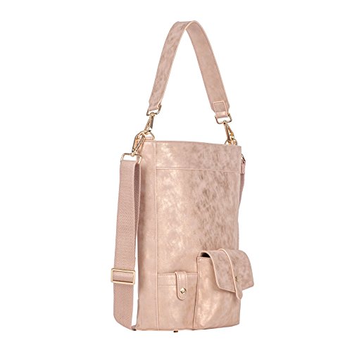 (LoQui Listen)/Accessories/Handbags/DIRECT FROM USA/Courtney Bucket Bag With Trendy Metallic Surface And Removable Shoulder Strap Multiple Pocket C...