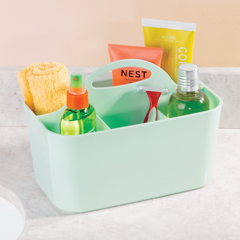 InterDesign Clarity shower caddy is ideal for storing make-up, shampoo, conditioner, hair accessory and so on.