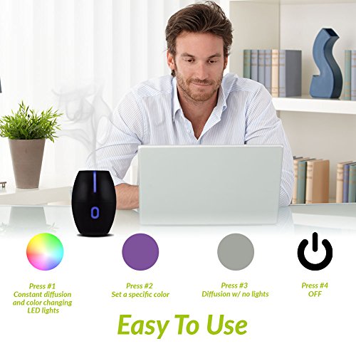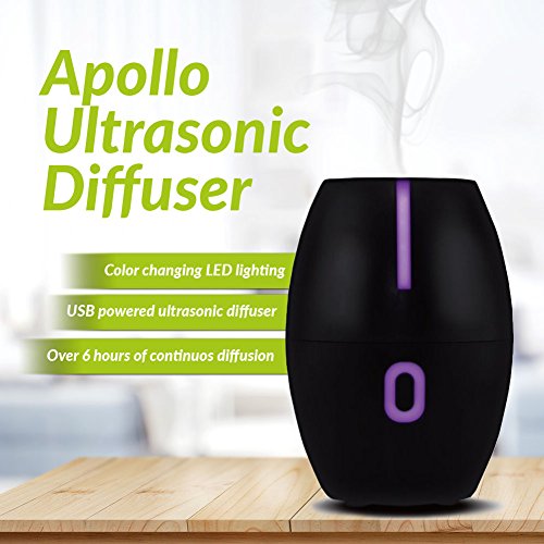 APOLLO | Modern, Compact, Silent Essential Oil Ultrasonic USB Diffuser w/LED changing lights (Black)