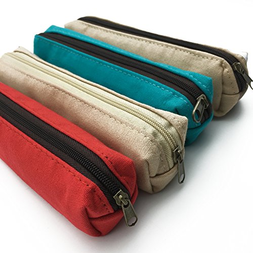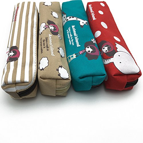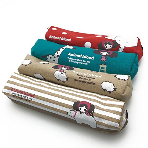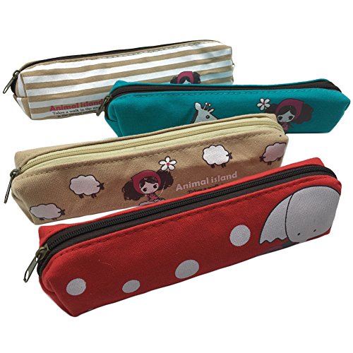 Mziart Cute Cartoon Girl and Animal Canvas Pen Pencil Pouch Stationery Bag Case for Students, Set of 4