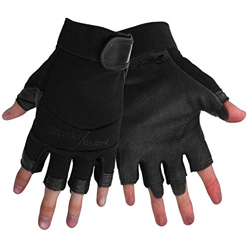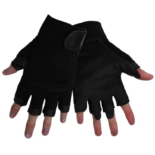 Studio : Global Glove Publisher : Global Glove Binding : Misc. Product Description Global Glove ThunderGlove black deerskin fingerless motorcycle glove. Material: flexible spandex over genuine deerskin, rubber knuckle protection, fingerless. Reinforced thumb and palm with added padding. Black spandex two way stretch backing for fit and flexibility. Extra tough knuckle protection. Double genuine deerskin padded palm. Elastic cuff with hook and loop Velcro closure for a perfect fit. Fingerless for superior dexterity. Excellent for most industrial and mechanical applications. Excellent for working with pneumatic tools. Also a great sport glove. Size: large. 0
