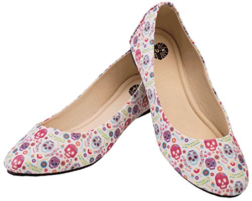 Product DescriptionJoin in the festivities in these super cute white and brights dia de los muertos flats.0