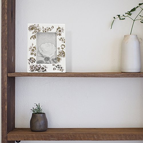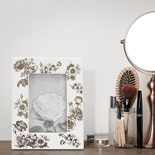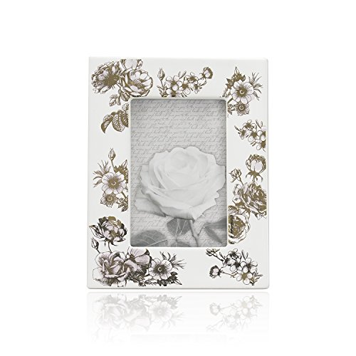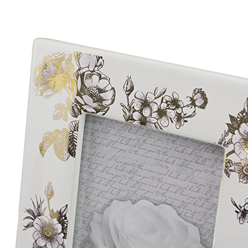 Parisian Home Ceramic Picture Frame, Floral, Gold, 4" x 6" in. for Home, Kitchen, Living Room, Girls, Women, Family Photos, Gift, Table Stand, Wall Hanging