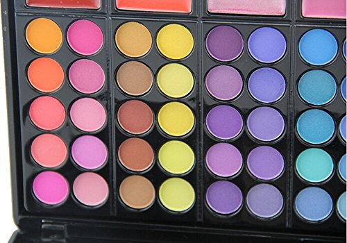 -. Feature : Size: 23.5*17.3*1.8CM / Palette includes:60 colors eyeshadow palette+12 colors lip palette+3 colors Concealer+3 colors blusher+2pcs lip brushes. / Professional makeup kit with eyeshadow, lip gloss,concealer and blusher,easy to carry. / Suitable for both professional salon and home use, and perfect for party makeup, casual makeup, wedding makeup, etc. / Package Content:1 x Profession 78 Colors Makeup Palette.