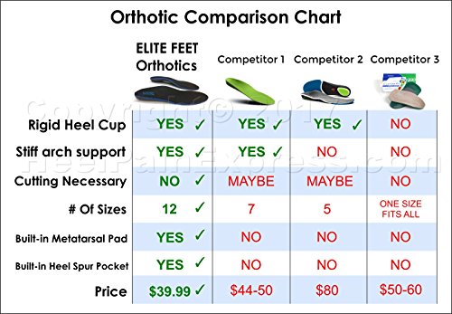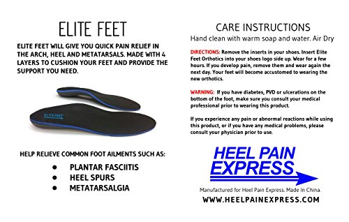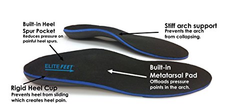 Elite Feet Full Length Orthotic Shoe Insoles By Heel Pain Express (1 pair) Comfortable Inserts (C. Mens 5-5.5 - Womens 7-7.5)