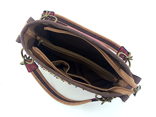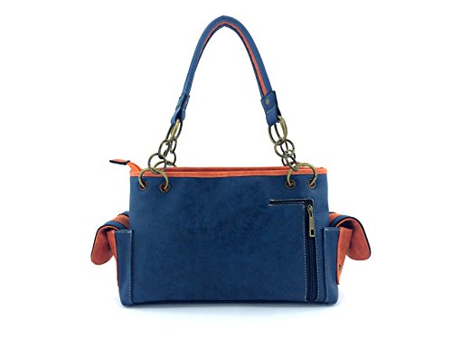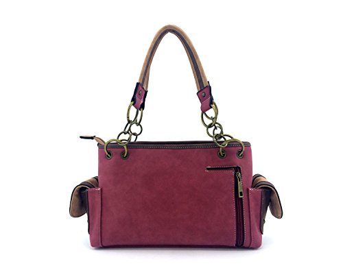 -. Feature : 13"Lx4.5"Wx8.5"H / Leather like PU / Concealed carry ,Embroidery with rhinestone and studs / Zipper closure,2 side flap pockets with magnetic closure / Chain straps,Cotton lining,1 interior zip divider, 1 zip pocket, 2 slip pockets