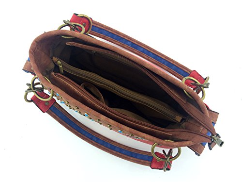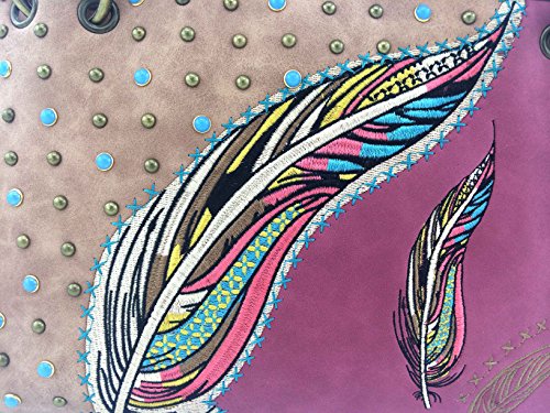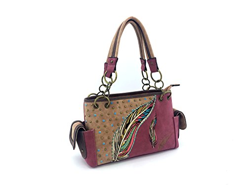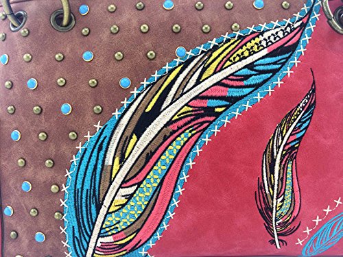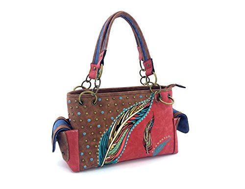 -. Title : Y.C. multi-color Feather Rhinestone Studded Side Pockets Inside Divider Western Purse Shoulder Bag