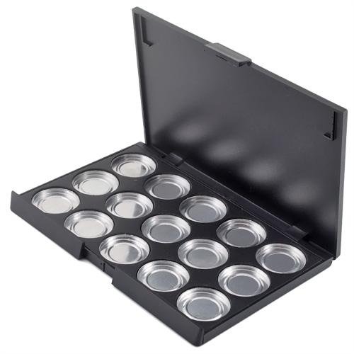 -. Feature : 15 piece empty eyeshadow palette. / You can blend your own color now and pack into these pans for easy carrying. / Very compact, convenient for travel. / Each slot holds a pan of 26mm size, 3mm height. / Palette size: 15cm x 10cm x 1cm.