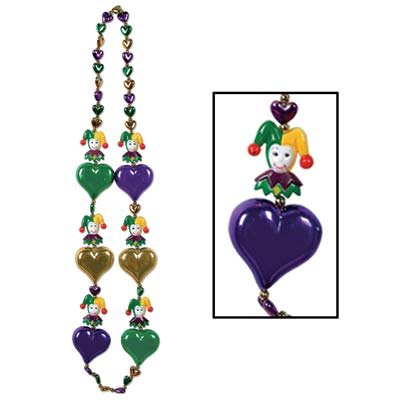Studio : Beistle Publisher : Beistle Binding : Kitchen Product Description The wild and Crazy Mardi Gras Fun Starts with Decorations! Start your Mardi Gras party off with a bang! and make your guests feel like they are in The Big Easy! Jester and Heart Beads (1/pkg) small heart beads with larger hearts and jesters Green, purple and gold alternating beads Contains: Jester Heart Beads 40in.(1/pkg), Pkg/1 0