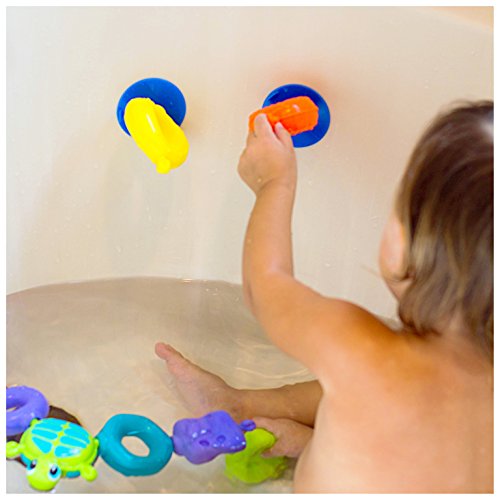 - Bath links hang on bathtub wall with the two suction cup attachments