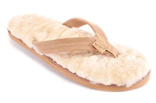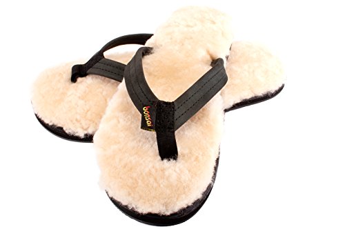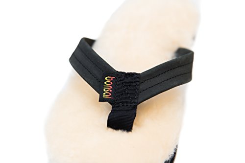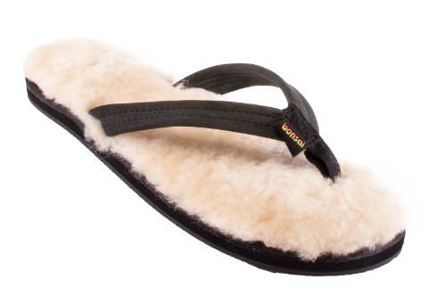 Sandals are easy to slip on and off and fun to wear, but only indoors or in good weather. Ugg moccasins and boots are comfortable and keep your toes toasty when its cool, but you can't slide them on and off with ease, or enjoy the feeling of shearling when its warm outside. Late for class one January day in Northern California, after slipping off my sheepskin moccasins to slip into my Rainbow sandals, it dawned on me-combine the comfort of shearling with the look and convenience of a traditional surfer-style leather sandal. The result: Bonsai Sandals-the original Sandal for All Seasons-a sheepskin flip flop that combines the ease and freedom of sandals with the comfort and warmth of genuine shearling. Why should you slip into a pair of Bonsai Sandals? (1) They keep your feet warm in the winter and cool in the summer: sheepskin is a natural insulator and naturally wicks away moisture, ventilating your feet with every step. (2) They mold to your feet over time. (3) They're a great conversation starter. As an owner of the original sheepskin sandal, you'll be sure to rack up the compliments. (4) They are 100% washable (by hand with a small amount Woolite and warm water and left to air dry) so they keep going and going. Thousands of happy customers enjoy walking in the comfort of sheepskin sandals no matter the season, and you can too. Bonsais make great, unexpected gifts-both stylish and useful-so stock up today! Don't worry, your purchase is entirely risk-free. Every pair comes with a 30-day money-back guarantee. So scroll up and hit "Add to Cart" now while supplies last. 0 |