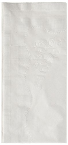 -. Feature : Folded, decorative, 2-ply paper napkins / 1/8 fold design for tabletop silverware placement, and for extra absorbency when folded / Measures 16" x 15" (W x L) when unfolded, and 3.75" x 8.0" (W x L) when folded / Color is white with embossed pattern / 2-ply paper for greater absorbency, durability, and softness than 1-ply paper