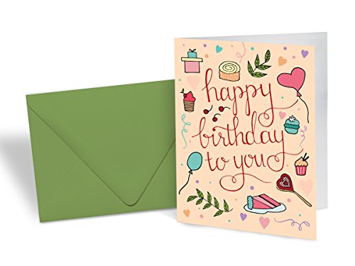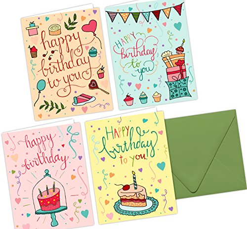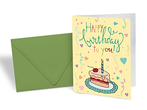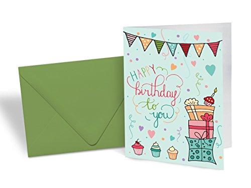 -. Feature : P.R.Inted on heavyweight (15 pt.) white, extra smooth stock. (Matte), Folded size 4.25" x 5.5". / Set of 12 Whimsical series - 4 designs, 3 of each - blank inside. / Included 12 Gumdrop green, unique fine cornered envelopes. / P.R.Inted & Crafted USA. / Package contains 12 folded premium quality happy birthday cards and envelopes.