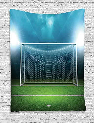 Sports Decor Tapestry By Ambesonne, Soccer Goal Post Sports Area Winner Loser Line Floodlit Best Team Finals Game Gym Theme, Bedroom Living Room Dorm Decor, 40Wx60L Inches, Green Blue