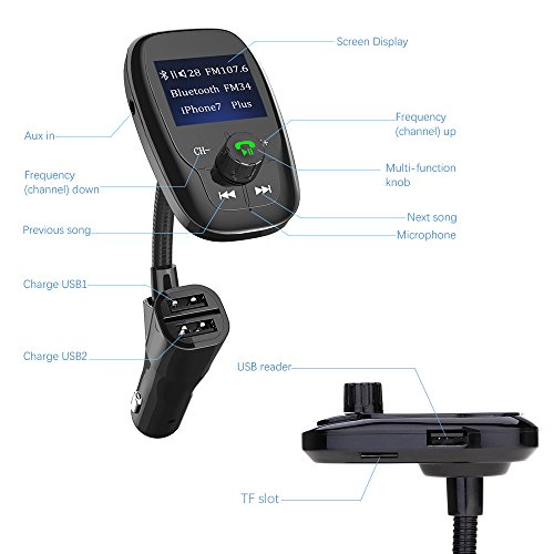Multi-task Bluetooth Transmitter You can play music with USB stick, AUX cable, TF card and Bluetooth enabled device. The FM transmitter plays and transmits music to your car stereo with high quality sound from the FM radio signal. Supports various other formats, including MP3, WMA. Supports TF card up to 32G memory.