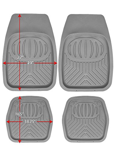 -. Feature : Set Includes: 2 Front Mats (19 inch x 27.35 inch), 2 Rear Mat (18.5 inch x 18.75 inch) / 100% All-Weather Heavy Duty - Protects Vehicles from Dirt, Dust. Rain, Hail, Sleet, Ice, Snow / Water Proof