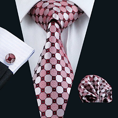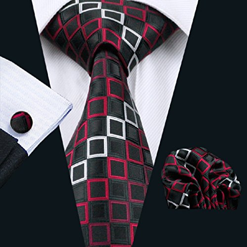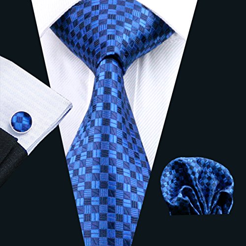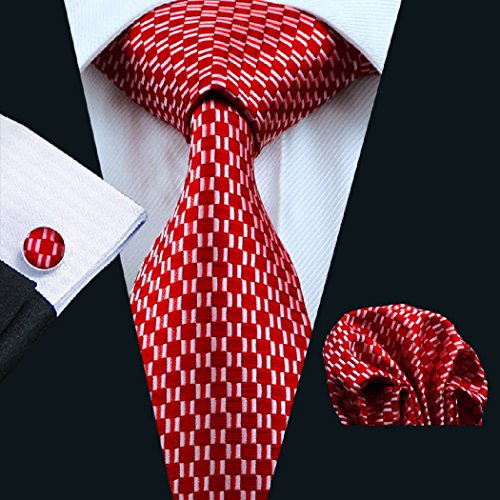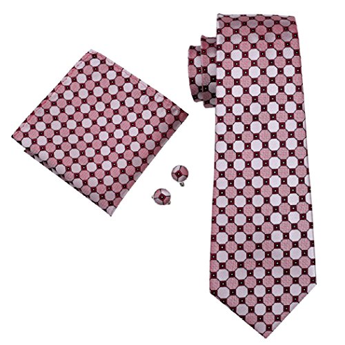 Why choose us? Material: Silk Craft: Jacquard Woven Size: 59.06"(150cm) in length and 3.35"(8.5cm) in Width Package included: necktie hanky 2 cufflinks