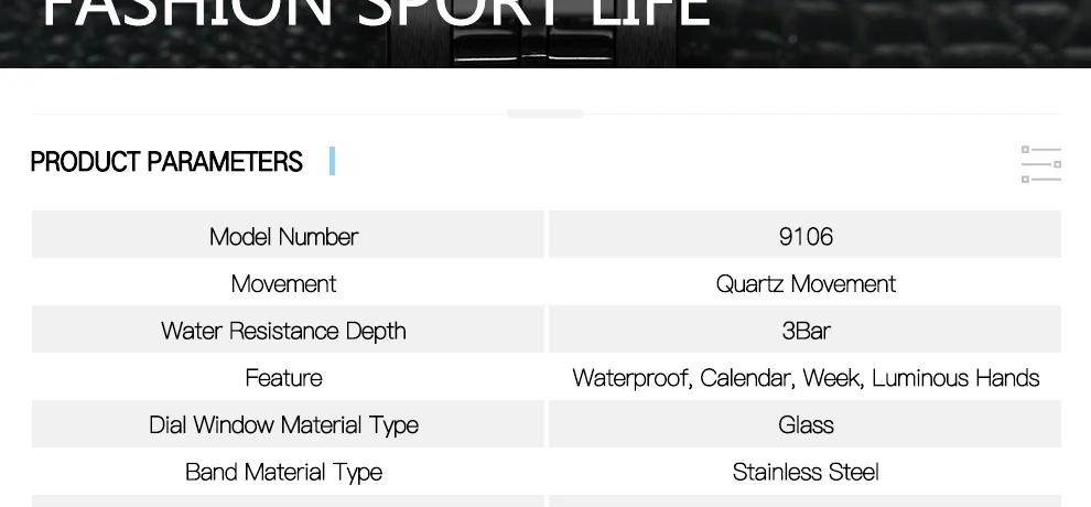 Feature:Complete Calendar,Luminous Hands,Week Display,Water Resistant