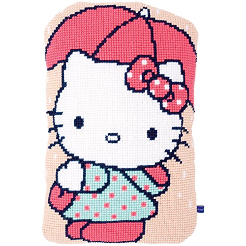 Vervaco-shaped cushion cross stitch kit. Vervaco is internationally renowned as a leading manufacturer of high quality needlework kits. They have a complete range of kits in different needlework techniques. A relaxing pastime that can also be applied for educational and therapeutic purposes! the design is hand painted exactly upon the weaving threads of the canvas. This package contains a large hole 100percent cotton Zweig art canvas 100percent acrylic yarn one needle and instructions. Finished size: 23-1/4x14-3/4 Inch. Design: Hello Kitty under umbrella. Hand wash. Imported.Feature
