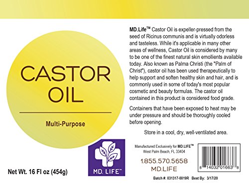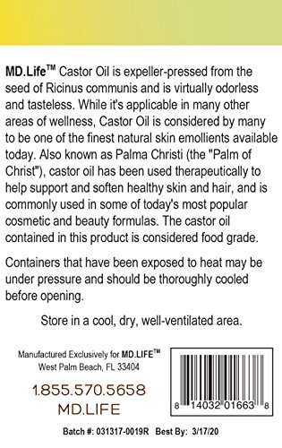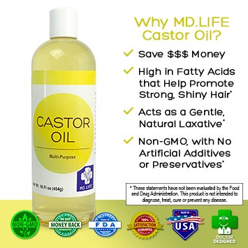 Save $$ MD.LIFE Castor Oil - 16 Oz Compare to Aria Starr Castor Oil Cold Pressed - 16 FL OZ - BEST 100% Pure Hair Oil For Hair Growth, Face, Skin...