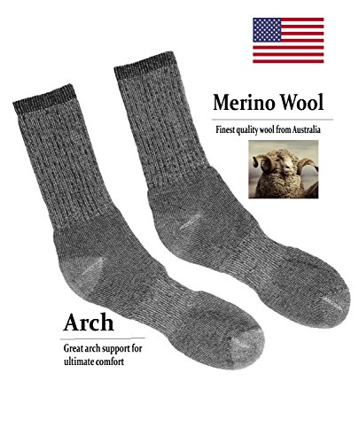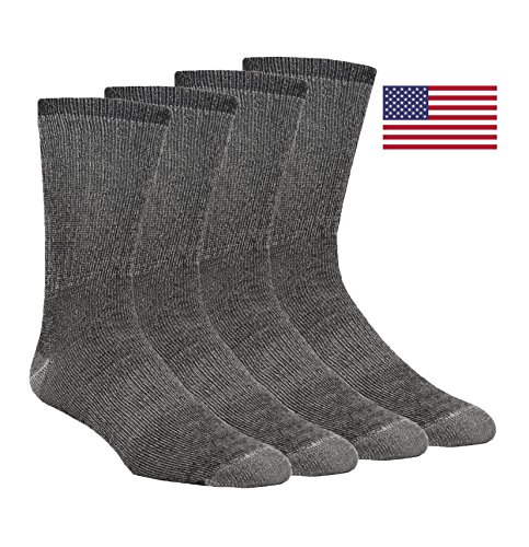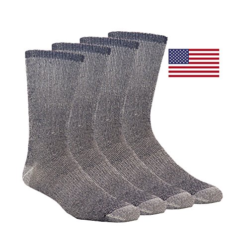 -. Binding : Apparel -. Brand : Frozen Folk -. Department : mens -. Feature : MERINO WOOL BOOT SOCKS: Whether you commute to an office or are going fishing or hunting in nasty weather, these are the socks you want to be wearing. Merino wool socks are best for extreme cold or extreme heat climates. In winter months, merino wool will keep your feet cozy warm, dry, and repel water and moisture. In summer months, the merino sheep wool has a natural ability to repel moisture will ensure your feet are dry and not sweaty. / MADE IN USA WOOL SOCKS: Made from ultra-premium Australian wool and are knitted right here in North Carolina. The wool we use is the highest grade merino wool available, and only the top 2% of all merino wool qualifies to be in these socks. Softest most durable wool for hunters, fisherman, and anyone who needs to protect against cold or heat outdoors / HIKING, TREKKING, FISHING, ARMY, HUNTING SOCKS: These are the socks you want to bring with you on any outdoor activities that you will want your feet dry, comfortable, and warm. Merino Wool is the best choice of sock for being on your feet most of the day. American service members serving abroad love receiving our premium-made socks as a gift, as they are significantly better than standard issued socks. / SIZING - FEATURES: One size fits most men, as they will fit men with U.S Shoe Sizes 8-13. 77% Ultra Fine Merino Wool, 22% Nylon, 1% Spandex. Cushioned heel for long lasting comfort. Elongated shaft reduces chafing or irritation from your boots. Elasticized instep provides flexible support without constricting mobility. See below for care instructions / FROZEN FOLK 30 DAYS MONEY BACK GUARANTEE: Frozen Folk specializes in creating premium socks and hosiery items. We stand behind the quality of all our products. If, within the first 30 days, you are not completely satisfied with your purchase for any reason, just let us know and we will refund you all your money. No Hassle 30 days 100% Money Back Guarantee. -. ProductGroup : Apparel -. ProductTypeName : SOCKSHOSIERY -. Title : 4 Pairs Merino Wool Socks Mens Hiking Socks, MADE IN USA, 77% Wool