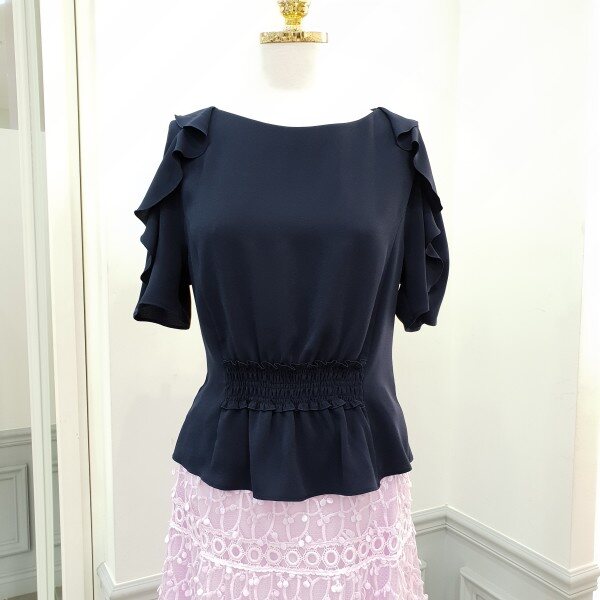 넥라인은 시원하게살짝보트넥 느낌~허리앞부분고무밴드주름처리로 불편함없이 날씬해보여용~♡전체적으로 신축성있습니당총장49cm
