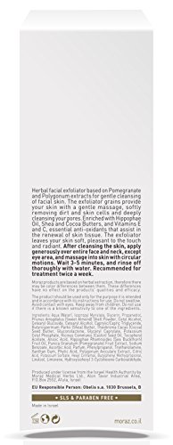 Herbal facial exfoliator based on Pomegranate and Polygonum extracts for gentle cleansing of facial skin. Enriched with Hippophea Oil, Shea and Cocoa Butters, and Vitamins E and C, essential anti-oxidants that assist in the renewal of skin tissue. The exfoliator leaves your skin soft, pleasant to the touch and radiant. SLS and paraben free. Recommended Usage: After cleansing the skin, apply generously over entire face and neck, except eye area, and massage into skin with circular motions. Wait 3-5 minutes, and rinse off thoroughly with water. Recommended for treatment twice a week.Feature