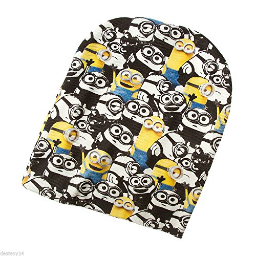 Product Description Despicable Me Minions Reversible Black and White Beanie Hat.... Reversible... 9 3/4"W... 77% Polyester/20% Nylon/3% Spandex.... Machine wash cold..... Imported..... One Size 0