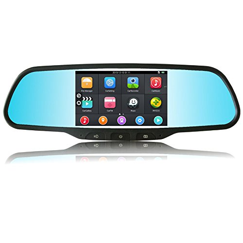 -. Feature : 5" Android Rear View Mirror GPS Navigation WIFI FULL HD Dual 1080P CAR DVR FM Transmitter / Android Car Rear View Mirror with 5 Inch capacitive touch screen, GPS Navigation built in, Rotatable Dash Camera as well as a DVR system, and Wi-Fi receiver. Replacing old rear view mirror, this Android mirror is an ultra high tech car gadget and super easy to install! In a world where our Phones, TVs, Fridges and even watches run Android, the Car Rear View Mirror Monitor couldn't stay behind. / Not only will this mirror do what every other rear mirror monitor does such as recording video, playing music, guiding you to your destination, but adding in the Android operating systems you'll be able to play games, surf the internet on your choice of mobile browsers, and download ever more functions direct from Google Play. And with an Allwinner Cortex A33 Quad core processor, running your apps faster with a true pleasure! / 5 Inch Capacitive Screen Android4.4 Car Rearview Monitor / Mirror Build-in Wifi Build in 1G DDR3/ 8G Flash GPS Sat Navigation FM Transmitter streaming the online music from the mirror to your car stereo Dual HD 1080P Car DVR Digital Video Recorder Night Vision Camera Brand: Ezonetronics Color:Black Size:34cm x 12cm x 6.5cm Weight:1.2K / Package Included: 1 x Smart Rear View Mirror 1 x Rear Camera 1 x Power Cable for Rear Camera 1 x Manual 1 x Car charger 2 x Rubber Rings