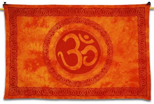 Om Tapestry Decorative Home Decor Wall Art Orange Table Cloth Cotton Bed Sheet Indian Art 83 X 54 Inches