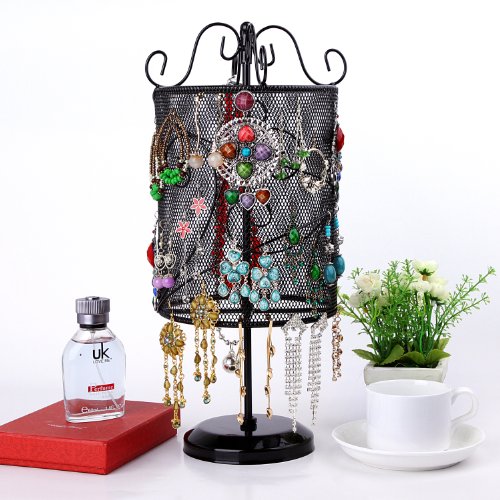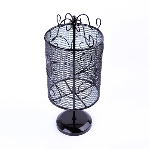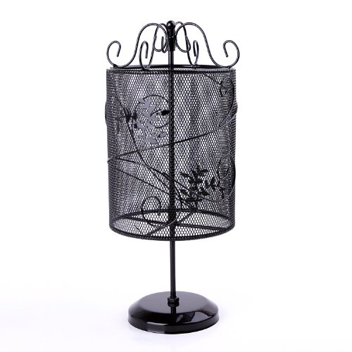 Vintage Style Black Metal Wire Mesh Cylinder Floral Design Earring Holder Hanger Jewelry Organizer