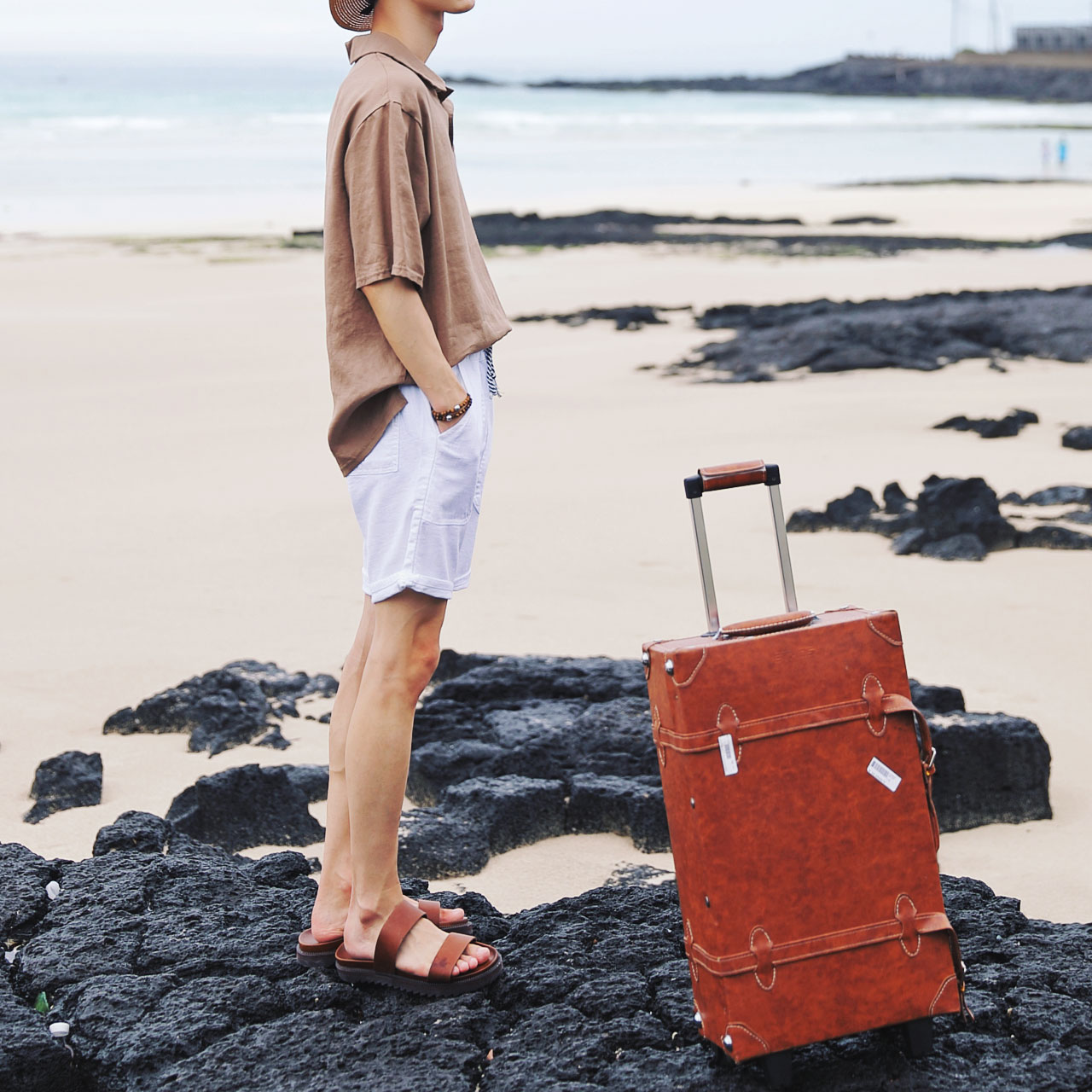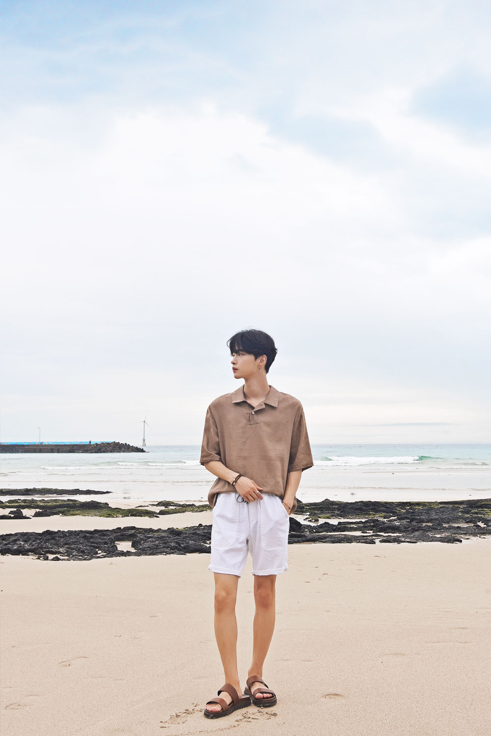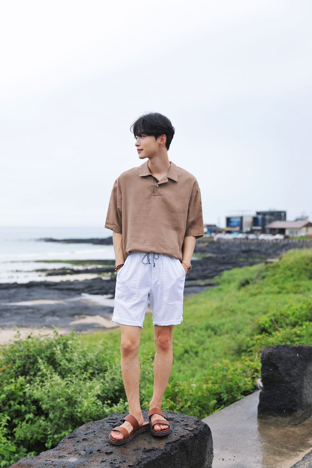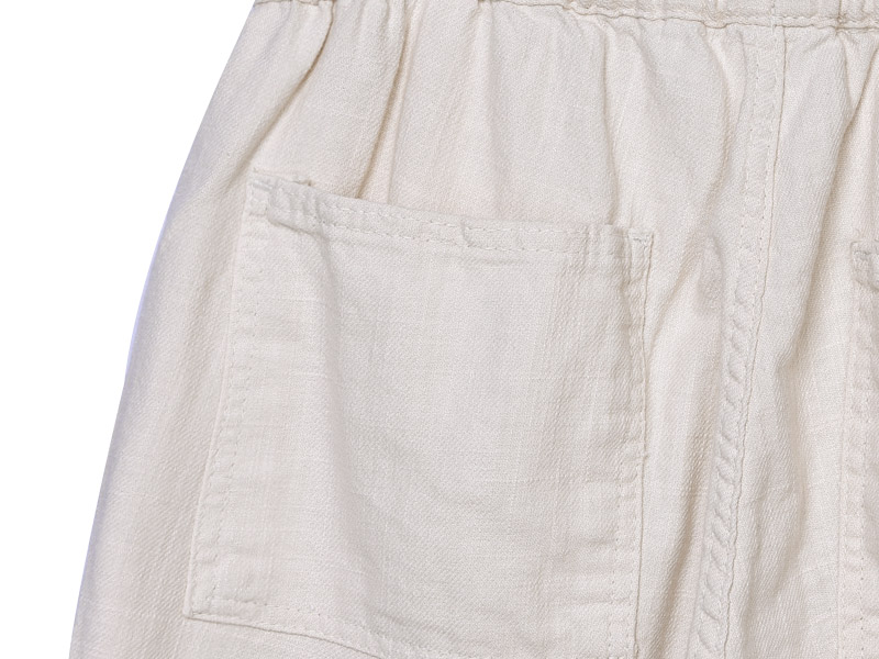 아웃포켓과 배색끈으로 포인트를 넣은 린넨밴딩 반바지입니다.FABRIC INFO