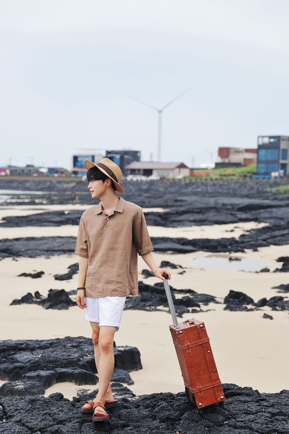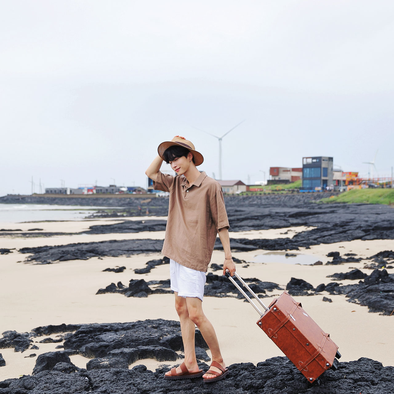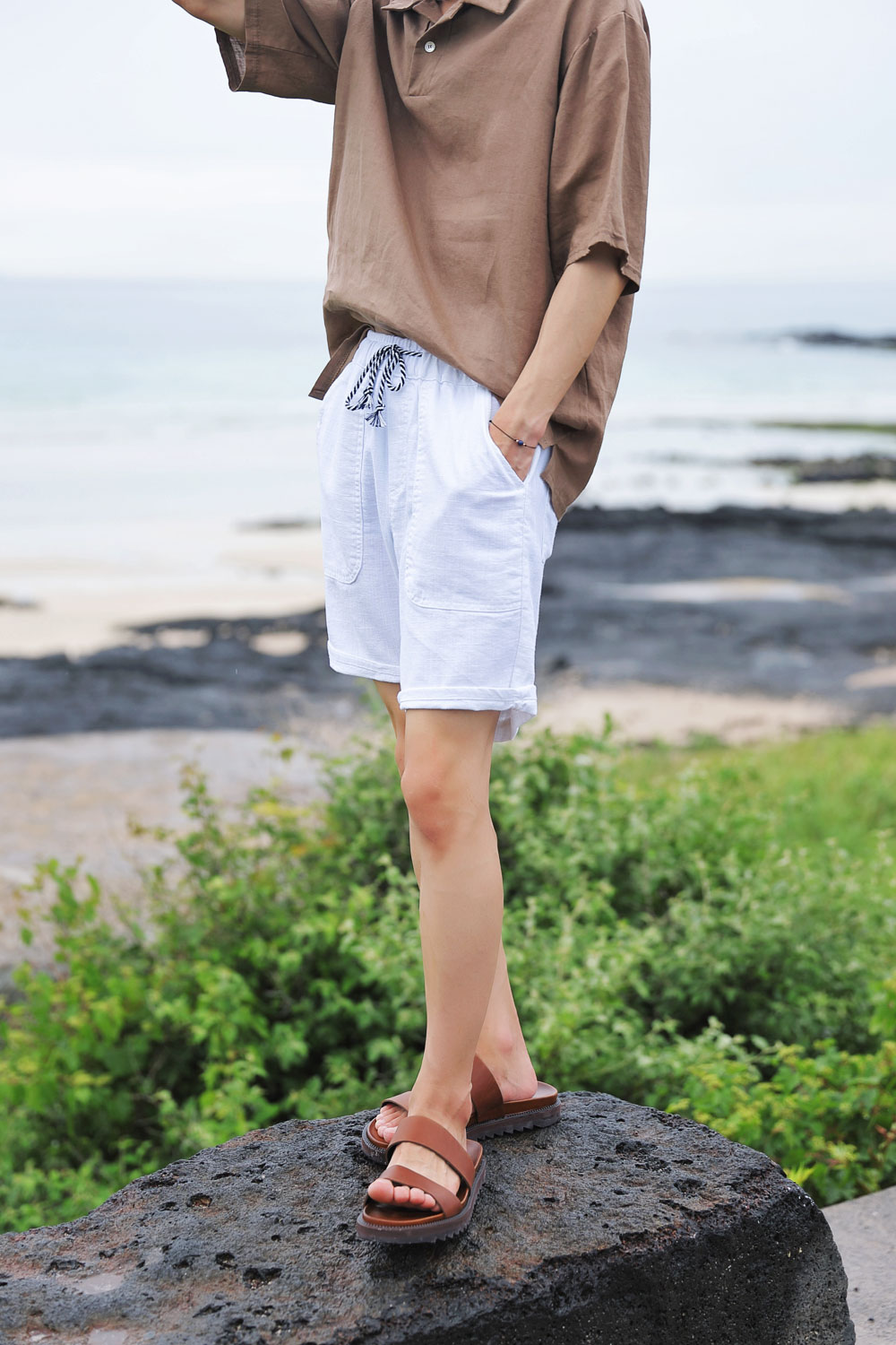 마린 린넨 밴딩 반바지