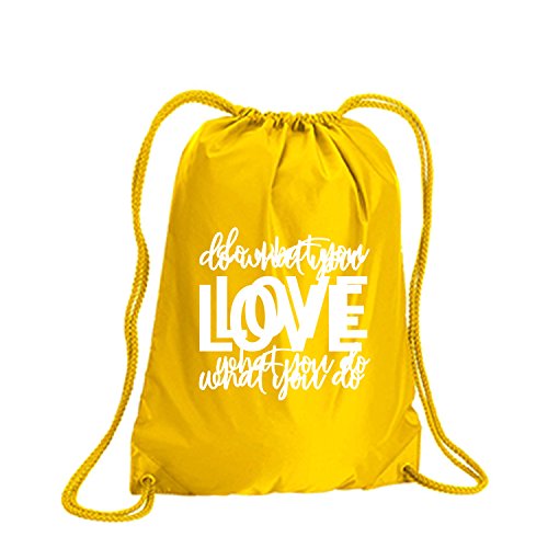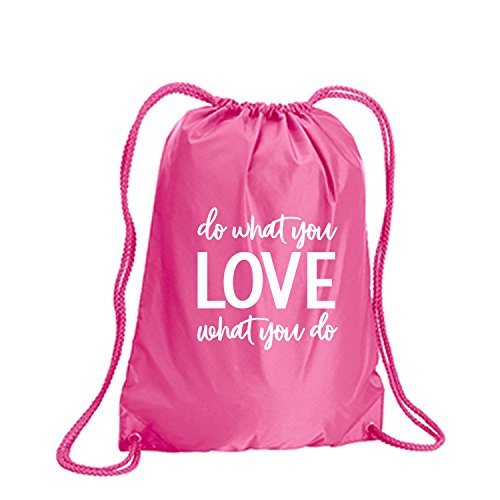 Product Description This durable and stylish nylon tote features "Do What You LOVE What You Do" on a cinch pack tote with white ink. Bag comes in small and large sizes and is made of a durable 210 Denier nylon and has color-matched draw cords. Printed in the USA on an imported bag. 0