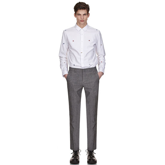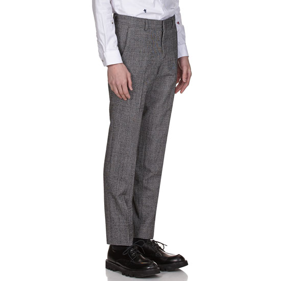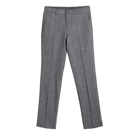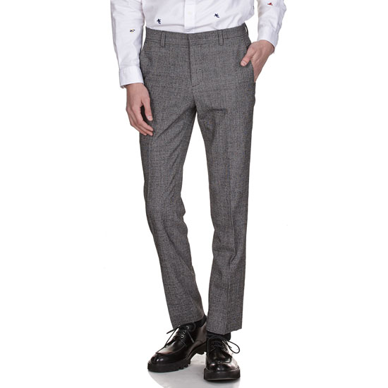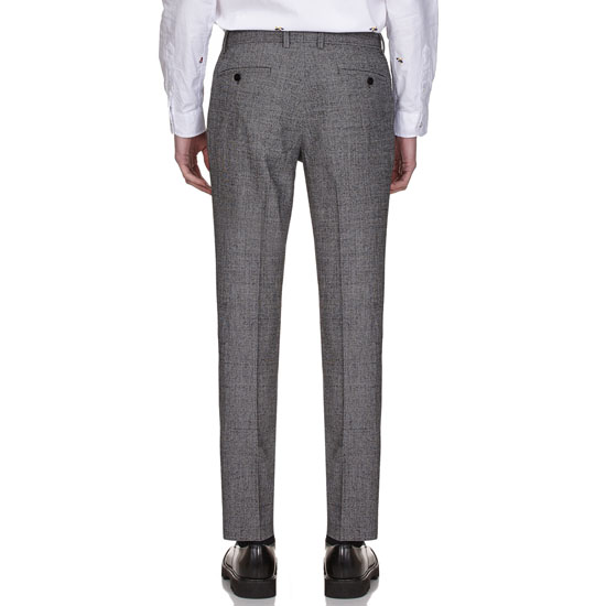- 투톤 컬러와 마이크로 하운드투스 패턴으로 포멀한 분위기의 남성 팬츠.