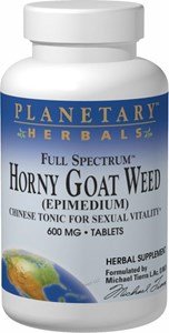Studio : PLANETARY HERBALS Publisher : PLANETARY HERBALS Binding : Health and Beauty Product Description Planetary Herbals Full SpectrumTM Horny Goat Weed Description Chinese Tonic for Sexual Vitality Epimedium is one of the most valued tonics of Chinese herbalism. In China it is especially used for supporting healthy sexual activity - thus its name, Horny Goat Weed. Planetary Herbals Full Spectrum Horny Goat Weed combines epimedium extract (standardized to 10% flavonoids as icariin) with whole leaf epimedium, to insure a full spectrum of important constituents. Directions As a dietary supplement, take one tablet twice daily between meals, or as recommended by your health care professional. *These statements have not been evaluated by the Food and Drug Administration. This product is not intended to diagnose, treat, cure, or prevent any disease. Warnings If you are pregnant or breastfeeding, consult your health care professional before using this product. 0