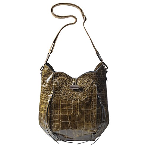 - Messenger bag made of croc embossed leather with a toggle closure and embroidered leather butterfly motif